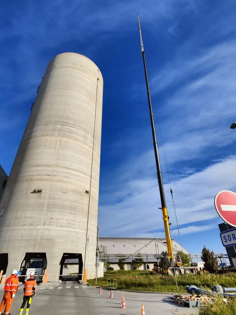 Instalacja konstrukcji stalowej, linii transportowej cementu oraz linii sprężonego powietrza do wentylacji i odpylania silosu.